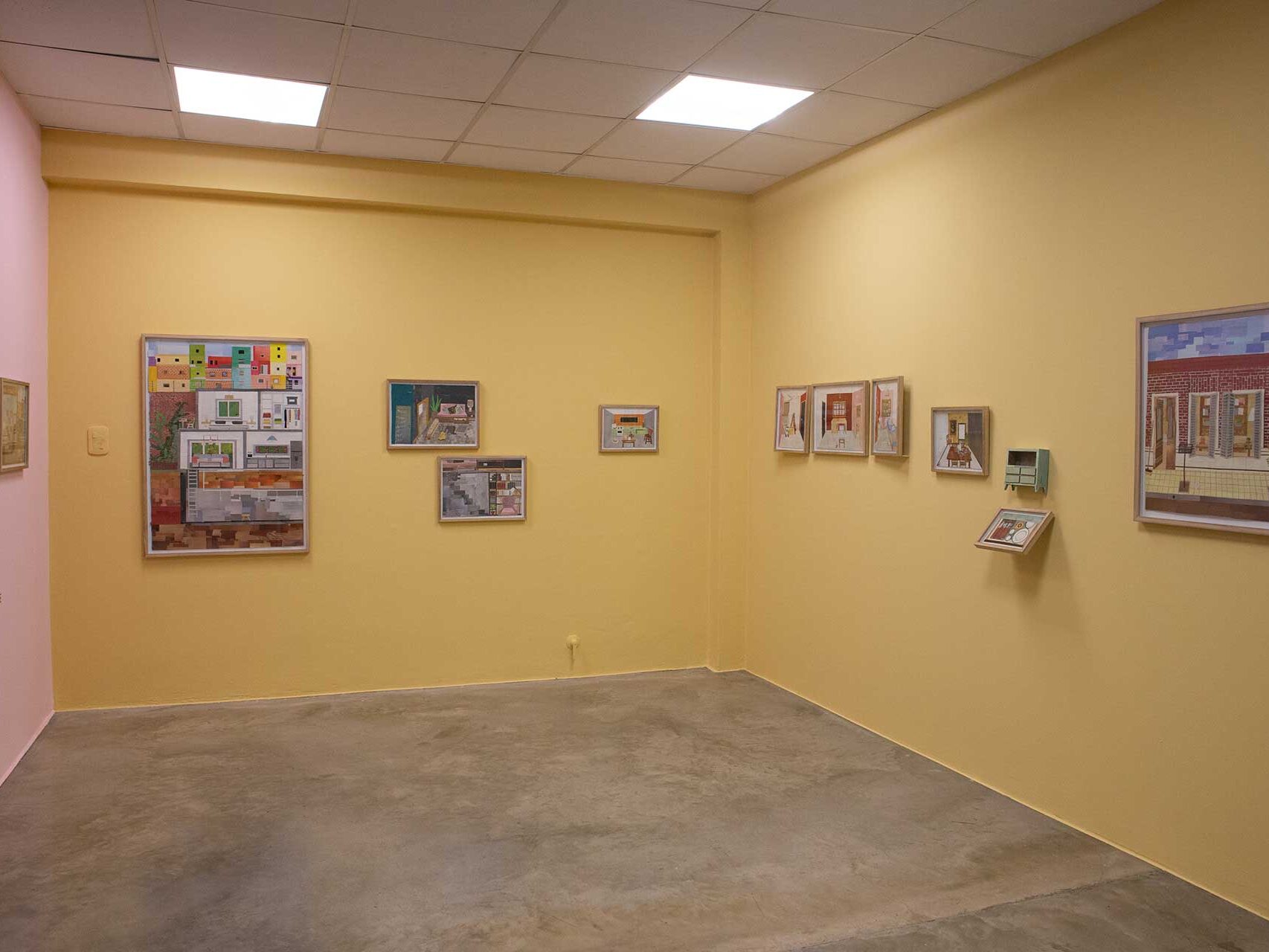 Debajo de los bloques lumínicos se erige una posibilidad última, un portal que parecería un espejismo. Su verticalidad prominente, exagerada incluso, evoca al monolito de la Odisea 2001 de Stanley Kubrick (“The thing’s hollow—it goes on forever—and—oh my God!—it’s full of stars!”, exclama uno de los personajes en el libro en que se inspira la película al observar un pesado monolito negro que aparece, misteriosamente, dentro de su habitación neoclásica, estilo Luis xvi, con piso iluminado).